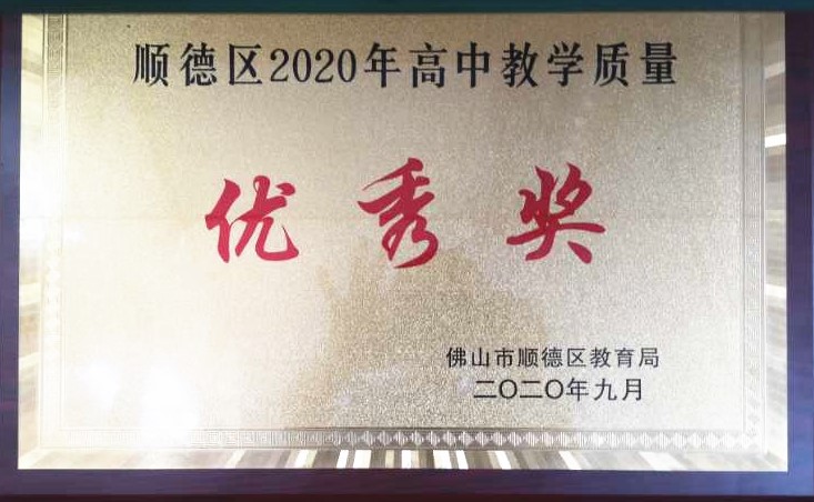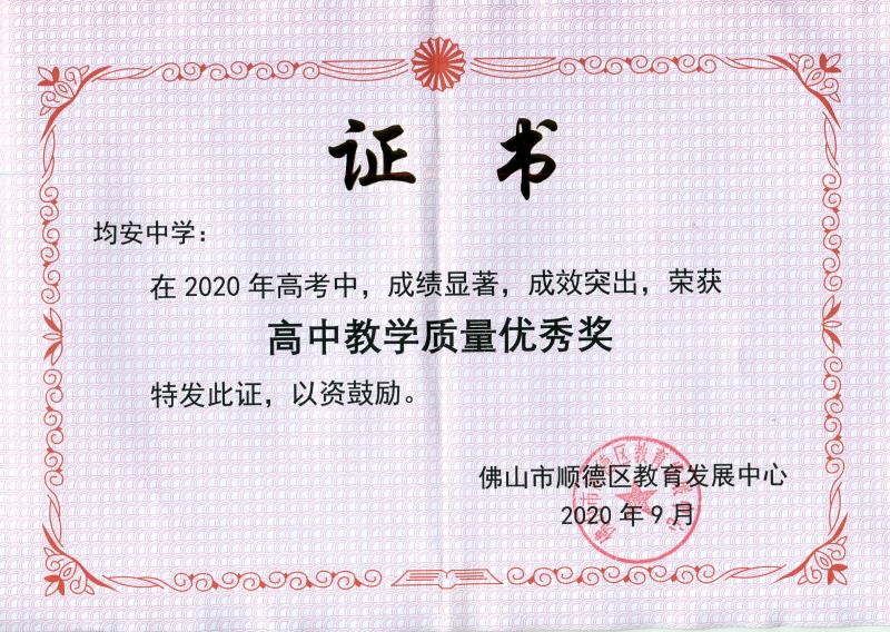 均安中學榮獲“2020年高中教學質(zhì)量優(yōu)秀獎”!