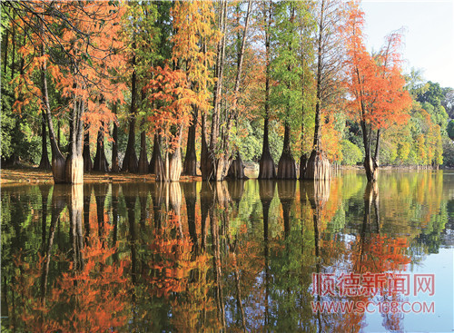 色彩明媚的水杉,如儀仗隊一樣挺立著,凝聚成一股昂揚向上的力量。