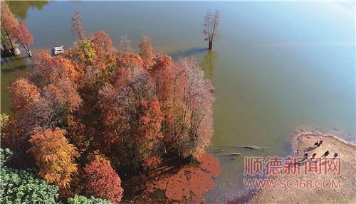 大片金黃色水杉吸引攝影愛好者拍攝創(chuàng)作。