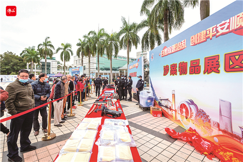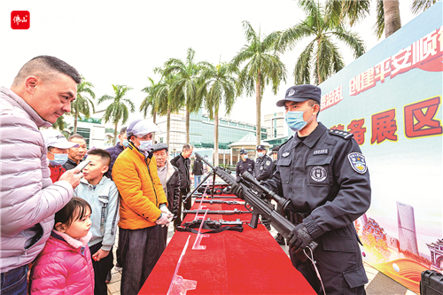 在涉案物品展區(qū),市民可以看到順德公安打擊黑惡犯罪期間收繳的部分涉案工具,直觀感受順德區(qū)掃黑除惡的工作成果;走進(jìn)特警裝備展區(qū),市民還能與各種特警裝備和特警車“親密”接觸。