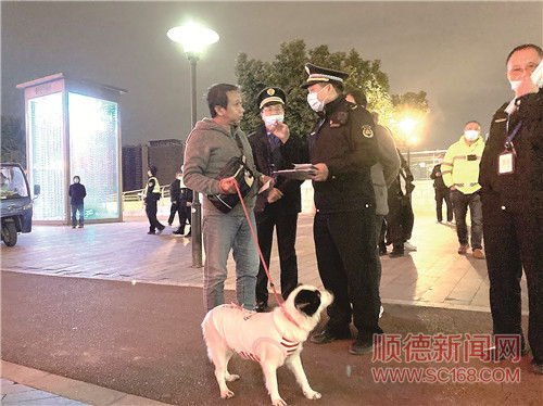 12 月16 日晚,順德區(qū)城市管理和綜合執(zhí)法局聯(lián)動(dòng)十鎮(zhèn)街分局開展了區(qū)鎮(zhèn)兩級(jí)文明養(yǎng)犬執(zhí)法行動(dòng)。圖為執(zhí)法人員對(duì)養(yǎng)犬人進(jìn)行文明養(yǎng)犬勸導(dǎo)教育。
