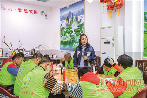 大門(mén)社區(qū)康復(fù)站社工正在指導(dǎo)康復(fù)學(xué)員們進(jìn)行彩筆繪畫(huà)。