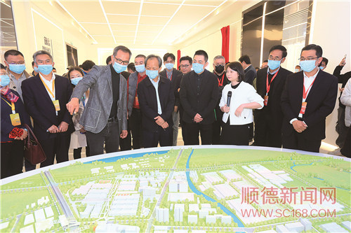 領(lǐng)導(dǎo)嘉賓參觀廣東工業(yè)設(shè)計城創(chuàng)新科技館,了解北滘社會經(jīng)濟(jì)發(fā)展情況。