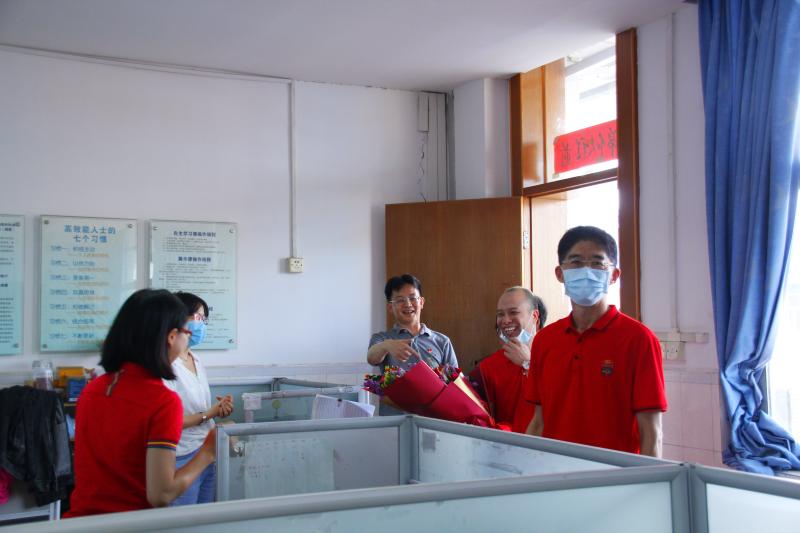 高三學(xué)子正進(jìn)行模擬考試,為了讓學(xué)子們不受打擾,張局長輕聲向熊校長詢問他們的身心健康和備考狀態(tài)。 隨后,張局長走入高三教師辦公室,慰問正在忙碌的一線教師,感謝他們的辛勤付出。張局長高度贊揚(yáng)了羅中教師吃苦耐勞的拼搏精神,同時(shí)勉勵(lì)大家再接再厲,再創(chuàng)佳績。 余逸主任向高三年級(jí)級(jí)長蘇靜瓊老師獻(xiàn)上了鮮花,并祝愿羅中學(xué)子在2020年高考中取得豐收碩果。 在高考沖刺關(guān)鍵時(shí)期,區(qū)領(lǐng)導(dǎo)的慰問進(jìn)一步鼓舞了高三師生的士氣。高三師生將以更高昂的斗志、更飽滿的狀態(tài)、更務(wù)實(shí)的態(tài)度投入到備考沖刺中。七月,我們期待再創(chuàng)高考新的輝煌!