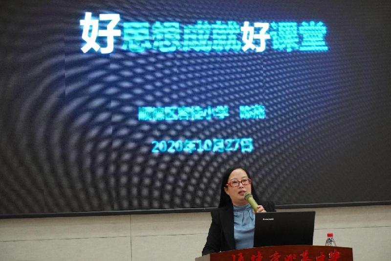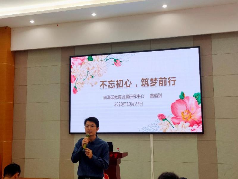 金秋送爽,順德教壇顯生機;名師引領(lǐng),鳳城后浪欲爭先。2020年10月27日,順德區(qū)第七批骨干教師在做好了各項防疫措施的前提下,齊聚李兆基中學,開展了為期一天的集中學習和研討?;顒拥拈_始,順德區(qū)教育局劉進華科長簡要總結(jié)了本批骨干教師兩年半的培訓和成長,并為此次集中培訓表達了殷切的期待。
