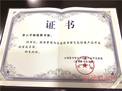全國(guó)圖書館文化創(chuàng)意產(chǎn)品開發(fā)聯(lián)盟證書。