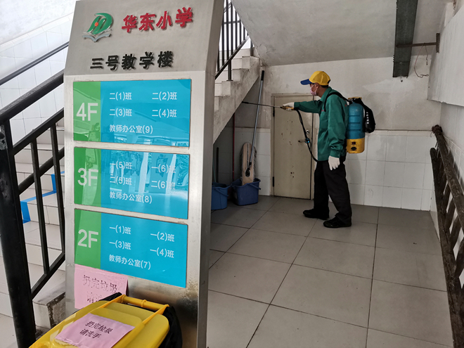 此外,學(xué)校還組織后勤人員每天進(jìn)行晨掃、下午掃和消毒,加大校內(nèi)清掃力度,認(rèn)真落實清掃保潔制度,及時清掃辦公樓道、廁所,及時清理垃圾污物,保證環(huán)境衛(wèi)生整潔。還組織保安員不定期噴灑消毒液,防止“四害”傳媒疾病的發(fā)生和流行,確保師生身體健康。