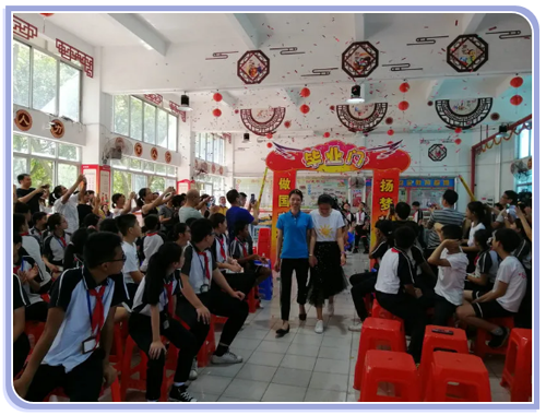 最激動人心的時(shí)刻到了!由各班班主任帶領(lǐng)著同學(xué)們走過畢業(yè)門,上臺接受吳校長頒發(fā)的畢業(yè)證書,并拍照留念。