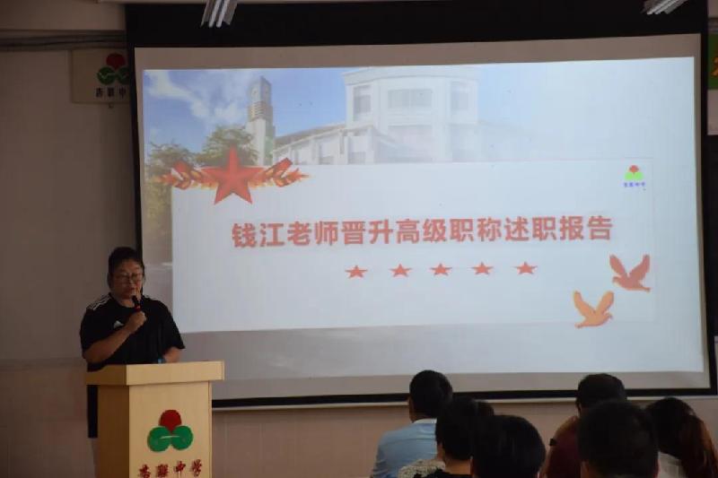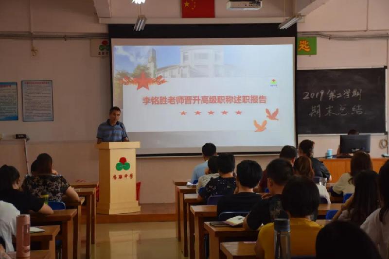 2019學(xué)年第二學(xué)期期末總結(jié)大會由錢江副校長主持,大會分為三個流程。一是十位申報晉升高級職稱的教師進行述職報告;二是趙平正校長發(fā)言并公布下學(xué)期的教學(xué)分工安排;三是表彰大會。