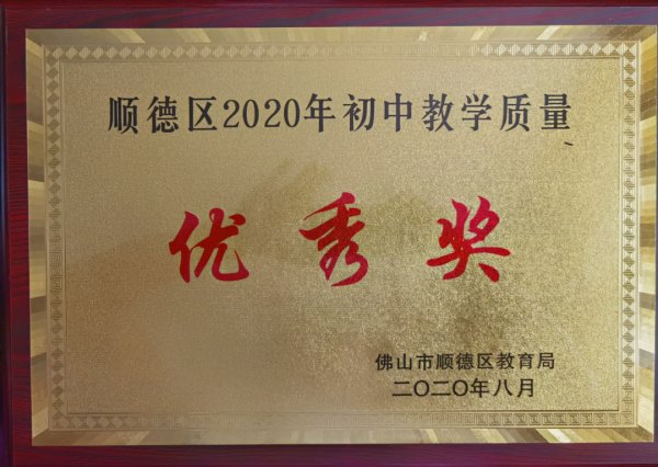 8月28日,順德區(qū)教育局召開了2020年中考質(zhì)量分析會(huì)。我校憑借優(yōu)異的中考成績(jī)榮獲“順德區(qū)2020年初中教學(xué)質(zhì)量?jī)?yōu)秀獎(jiǎng)”。會(huì)上,豐華中學(xué)賴壽山校長(zhǎng)從順德區(qū)教育局領(lǐng)導(dǎo)手上接過(guò)金閃閃、沉甸甸的牌匾。