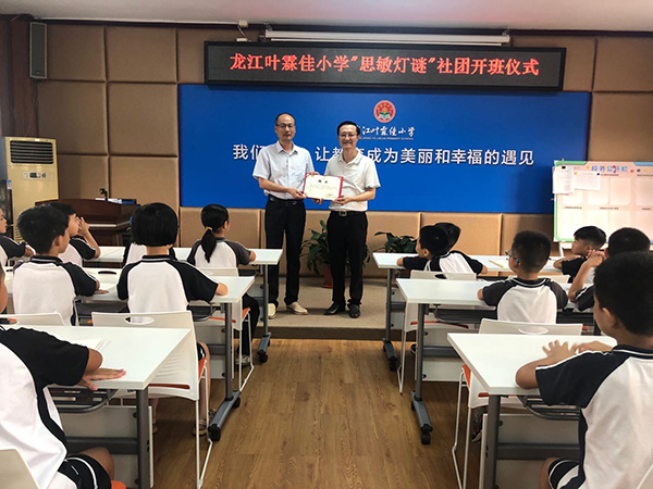 燈謎藝術(shù),源遠流長,雖形式短小,但內(nèi)容豐富,是融知識性、思想性、思維性、趣味性為一體的微型文學(xué)藝術(shù)和傳統(tǒng)藝術(shù)。我校燈謎社團經(jīng)過幾年的發(fā)展,已經(jīng)取得了一定的規(guī)模。為進一步深挖燈謎特色內(nèi)涵,傳揚優(yōu)秀的燈謎傳統(tǒng)文化,擴大品牌社會影響,2020年9月4日“思敏”燈謎社團特色項目進行了隆重的開班儀式,特別邀請了順德區(qū)燈謎協(xié)會譚沃強會長前來,并正式聘請譚會長為我校“思敏”社團名譽團長及首席導(dǎo)師。