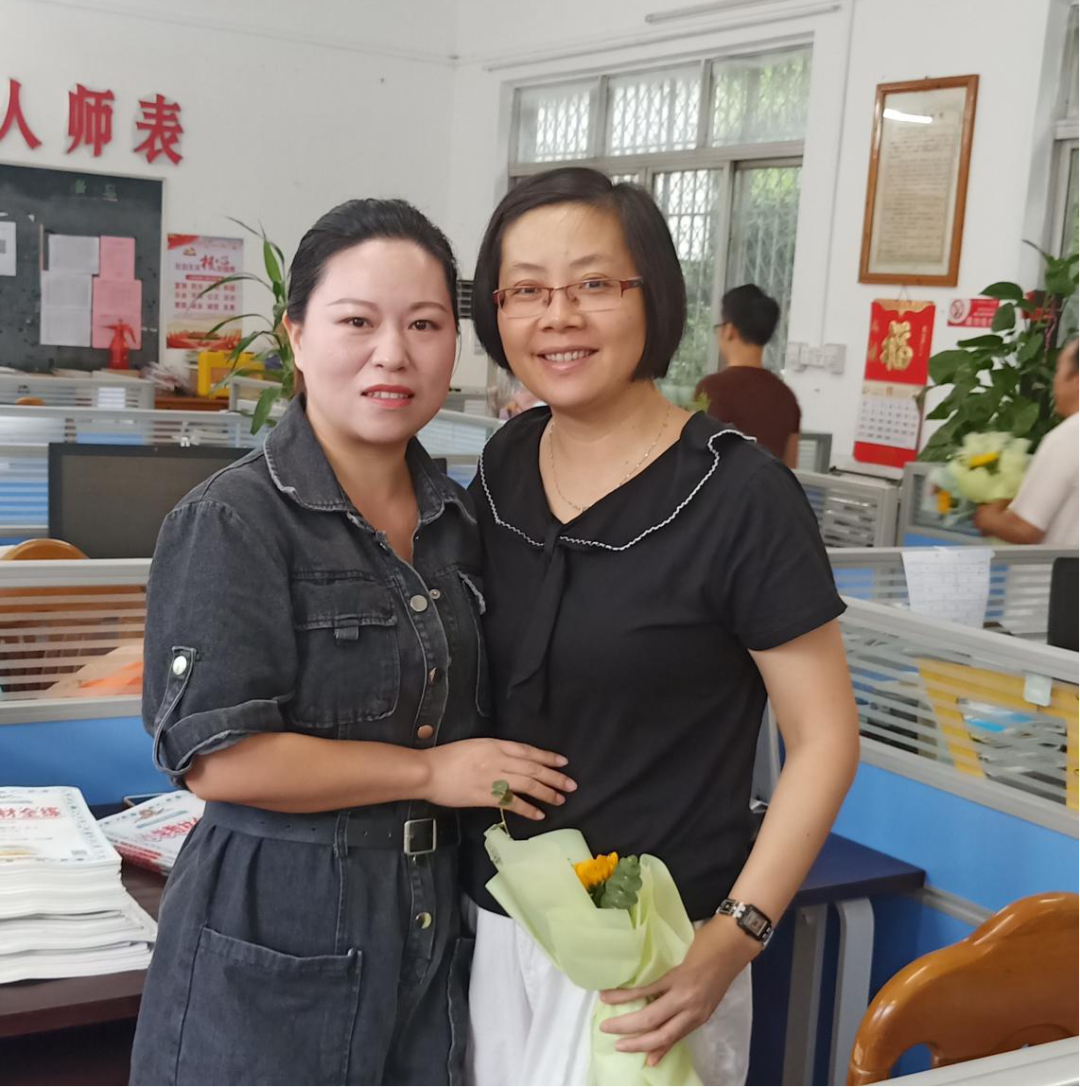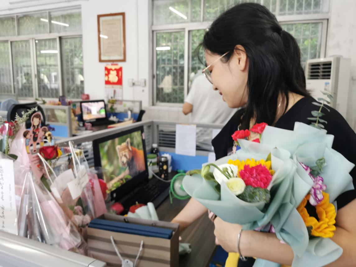 (家委代表們手捧鮮花向老師們送來滿滿的節(jié)日儀式感)