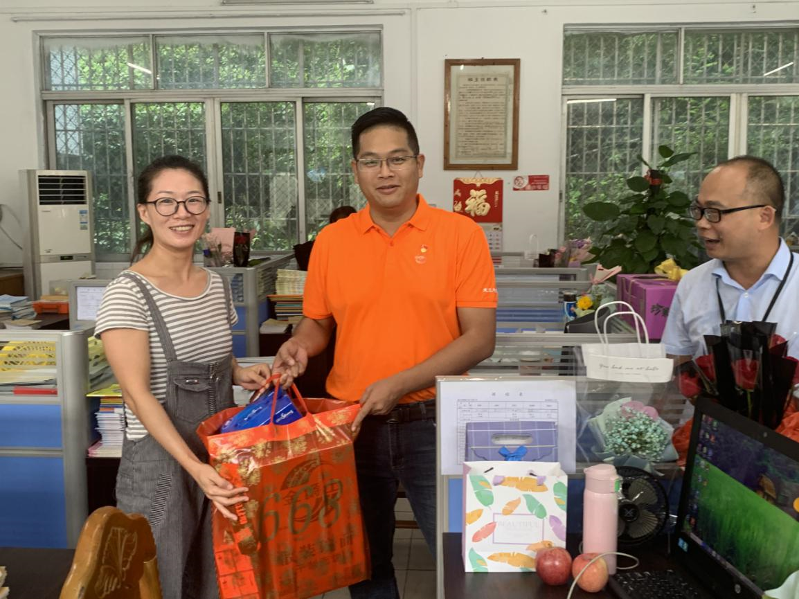 學(xué)校的熱心家委們在會長的帶領(lǐng)下自發(fā)組織了一場贈旗慰問儀式,為老師們送去鮮花和祝福,感謝老師們一直以來的辛勤耕耘。贈旗儀式上,家委會會長代表家長們向邱校長贈與了感謝錦旗,隨后家委代表們手捧鮮花,送到辦公室老師們的手上以示感恩之情。