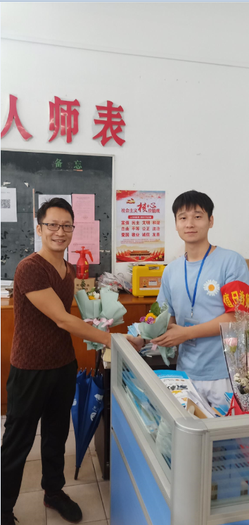 校園里孩子們捧著鮮花奔走在辦公室的身影格外引人注目,“老師,這是送您的禮物,祝您教師節(jié)快樂”一聲聲稚嫩的祝福暖進了老師的心窩。學(xué)校還為每位老師準(zhǔn)備了一支鮮紅的玫瑰花。