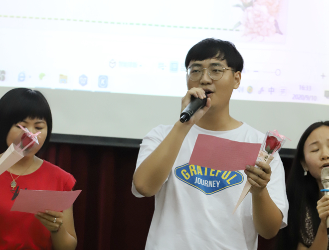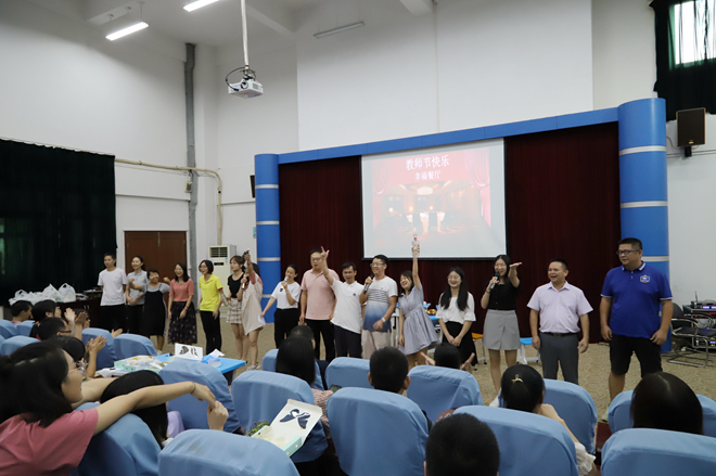 9月10日下午,全體教師聚集學(xué)校階梯式,進行了短暫的慶祝教師節(jié)活動。簡單的下午茶,臨時排練的小節(jié)目,讓現(xiàn)場到處都洋溢著幸福、快樂的節(jié)日氣息!