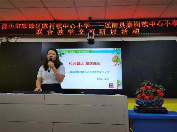 隨后,植麗娟主任以《和潤致遠(yuǎn) 和諧成長》為主題進(jìn)行專題講座。講座中,植麗娟主任詳細(xì)介紹了陳村鎮(zhèn)中心小學(xué)“和潤教育”的四個(gè)做法和經(jīng)驗(yàn),結(jié)合這次帶來的3節(jié)精品課例介紹和潤課堂教學(xué)模式。