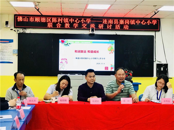 2019學(xué)年陳村鎮(zhèn)中心小學(xué)鄧金山老師赴連南寨崗鎮(zhèn)中心小學(xué)支教。一年下來,鄧?yán)蠋煵坏殃惔彐?zhèn)中心小學(xué)“和潤教育”的先進(jìn)教育理念和課改模式帶到寨崗鎮(zhèn)中心小學(xué)里,而且還把兩校合作互進(jìn)的友誼種子深深埋下。