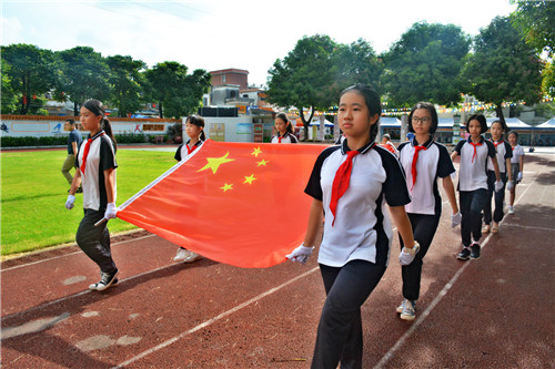 活動(dòng)第一站,幼兒園小朋友們和奮揚(yáng)學(xué)子代表在學(xué)校操場(chǎng)上共同參與升旗儀式。幼兒園小朋友們看著奮揚(yáng)學(xué)子整齊有序的隊(duì)伍、莊嚴(yán)的站姿、規(guī)范的升旗禮,體驗(yàn)到了升國(guó)旗時(shí)的莊嚴(yán)與肅穆。