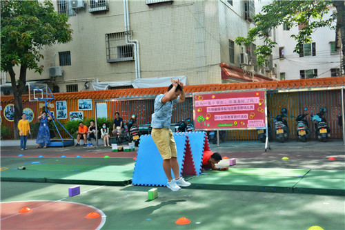 活動(dòng)第三站,學(xué)校劉志明老師帶領(lǐng)幼兒園小朋友們上了一節(jié)趣味盎然的體育課。帶領(lǐng)小朋友們做好充分地?zé)嵘頊?zhǔn)備后,劉老師根據(jù)龜兔賽跑的課程主題,學(xué)習(xí)了烏龜與兔子賽跑的姿勢(shì),融入了對(duì)應(yīng)角色,進(jìn)行賽跑活動(dòng)教學(xué)。幼兒園小朋友們各展所能,竭盡全力地奔赴終點(diǎn)。