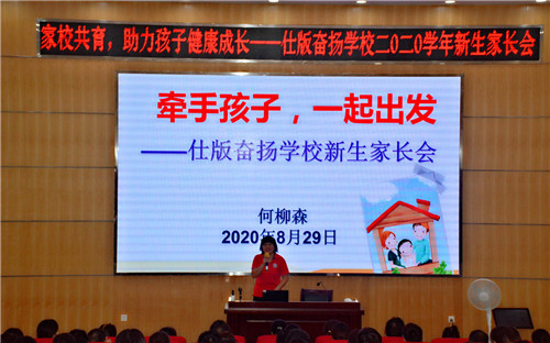 疊翠流金,丹楓迎秋,又是一年迎新時(shí)。為了增強(qiáng)家校合作,共同助力孩子們?nèi)谌胄W(xué)生活,促進(jìn)孩子們健康陽光地成長,2020年8月29日上午,仕版奮揚(yáng)學(xué)校召開了一年級(jí)新生培訓(xùn)及家長會(huì)。