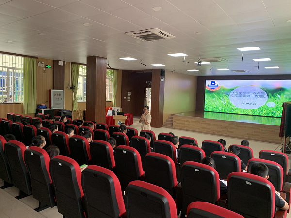 為進(jìn)一步落實我校開學(xué)來的師生心理健康調(diào)適工作,充分發(fā)揮班級心理委員的作用,讓心理委員們真正成為朋輩輔導(dǎo)的主力,更好服務(wù)學(xué)生心理狀況篩選與干預(yù)工作,提升心理委員的心理知識和素養(yǎng),在班級心理工作中真正發(fā)揮作用,9月29日上午,心理老師馮蔭老師在學(xué)校新階梯教室開展了主題為“成長自我,關(guān)愛他人”的中高年級心理委員培訓(xùn)活動,四-六年級共有48名心理委員參與本次培訓(xùn)。