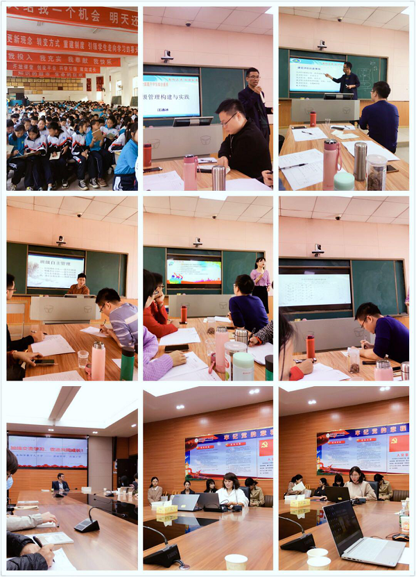 10月23日,老師們通過(guò)聆聽(tīng)專題講座、案例分析、主題沙龍等活動(dòng),深入了解許市中學(xué)的班級(jí)自主管理。講座由許市中學(xué)江逸冰副校長(zhǎng)開(kāi)展,江副校長(zhǎng)分別就如何構(gòu)建班級(jí)班干、班級(jí)文化建設(shè)、提高班級(jí)凝聚力等問(wèn)題作了深入細(xì)致的講解。在培訓(xùn)中運(yùn)用了鮮活的實(shí)際案例,深入淺出,引人入勝,北小全體學(xué)員全身心地投入到講座學(xué)習(xí)中,收獲滿滿!