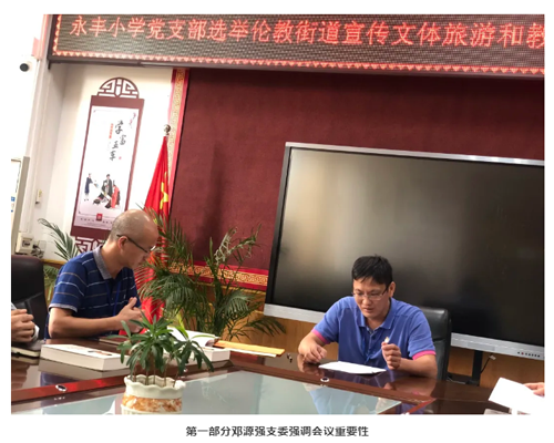 根據(jù)街道黨建工作安排,倫教街道宣傳文體旅游和教育線永豐小學黨支部于10月23日中午在會議室舉行倫教街道宣傳文體旅游和教育線黨委黨代表選舉和“兩推”工作會議。出席會議的有我校黨支部的黨員和駐我校支部的倫教街道宣傳文體旅游和教育線支部成員劉鵬。