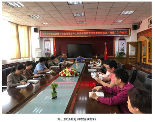 第一部分是召開倫教街道宣傳文體旅游和教育線黨委換屆選舉動員大會,會議由鄧源強支委主持,他強調(diào)黨委的換屆是黨員群眾政治生活中的一件大事。要求全體黨員要堅持全面貫徹黨的十九大精神,深入貫徹落實科學發(fā)展觀,以《黨章》和《中國共產(chǎn)黨基層組織選舉工作暫行條例》為依據(jù),選好配強新一屆黨委領導班子。