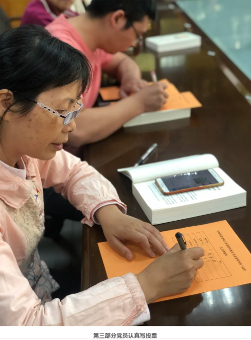 宣讀材料后,全體黨員開始投票選出學校黨支部黨員代表大會代表。經(jīng)過公正公開地計票,選出的代表分別是吳凡、謝芳、鄧源強、陳冰怡和鐘淑惠五位同志。