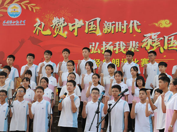 2020年,是全面建成小康社會(huì)的決勝之年,是奪取新時(shí)代中國(guó)特色社會(huì)主義偉大勝利的關(guān)鍵之年,是中國(guó)現(xiàn)代化強(qiáng)國(guó)征途的啟航之年。為實(shí)現(xiàn)“立德樹(shù)人”教育目標(biāo),培養(yǎng)德智體美全面發(fā)展的新時(shí)代中國(guó)社會(huì)主義建設(shè)者和接班人,弘揚(yáng)學(xué)生的“愛(ài)國(guó)心,報(bào)國(guó)情,強(qiáng)國(guó)志”,豐富校園文化生活,打造書香校園。陳村鎮(zhèn)初級(jí)中學(xué)初二級(jí)于2020年11月5日下午,在學(xué)校操場(chǎng)舉辦了“禮贊中國(guó)新時(shí)代,弘揚(yáng)我輩強(qiáng)國(guó)志”的朗誦比賽。陳村鎮(zhèn)初級(jí)中學(xué)謝文忠校長(zhǎng)、專職書記梁兆倫副書記、李日和副校長(zhǎng)、汪立云副校長(zhǎng)、教務(wù)處楊麗桃主任、總務(wù)處林鵬副主任出席了本次比賽活動(dòng)。初二級(jí)全體語(yǔ)文老師擔(dān)任評(píng)委。