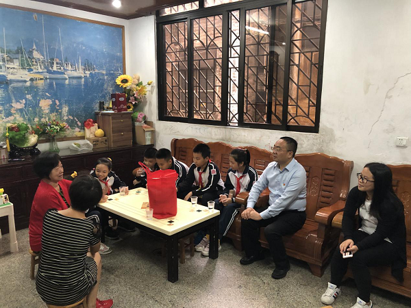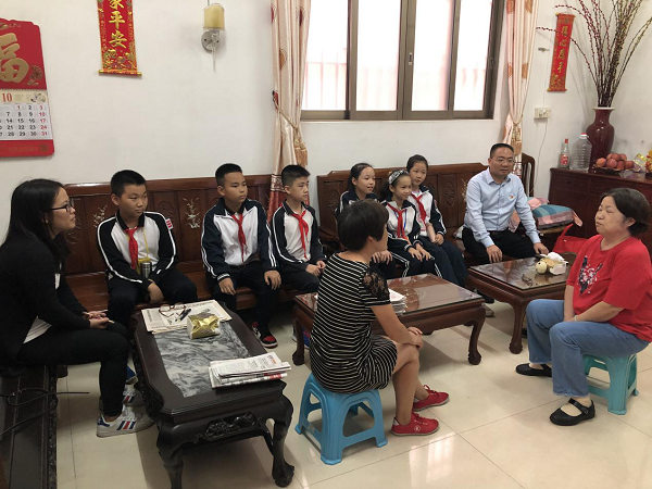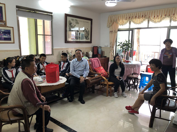 在何小祥書記、黎瑞萍專職副書記以及大隊(duì)輔導(dǎo)員張麗君、趙尚萍老師的帶領(lǐng)下,北海小學(xué)少先隊(duì)員代表帶著慰問(wèn)品來(lái)到退休老師的家中進(jìn)行拜訪。每到一位退休教師的家中,老師代表們和隊(duì)員們都與老教師們進(jìn)行了親切的交談,詢問(wèn)他們退休后的生活情況。有些退休教師還給少先隊(duì)員們講他們過(guò)去在學(xué)校的故事,勉勵(lì)隊(duì)員們一定要好好學(xué)習(xí),珍惜現(xiàn)在的學(xué)習(xí)與生活,做一名品學(xué)兼優(yōu)的好學(xué)生。
