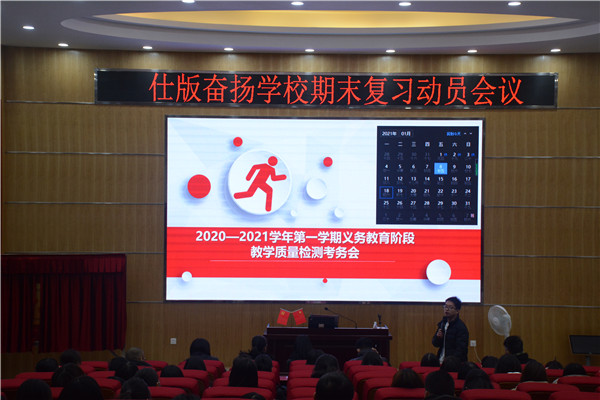 期末已如期而至,為了引導(dǎo)全體教師有效復(fù)習(xí),同時加強(qiáng)考務(wù)工作的管理,進(jìn)一步端正考紀(jì)考風(fēng),強(qiáng)化安全和責(zé)任意識,扎實(shí)有效地開展各項任務(wù),確保期末教學(xué)質(zhì)量檢測工作的順利進(jìn)行,1月8日下午,仕版奮揚(yáng)學(xué)校召開了2020年秋季學(xué)期期末復(fù)習(xí)動員暨考務(wù)工作會議。