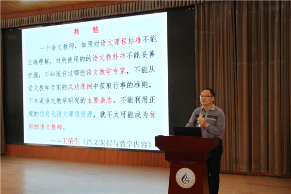 此次活動共分為4個環(huán)節(jié):先是對“文本解讀”評比活動的優(yōu)秀作品進行頒獎,再由各校代表分享他們的文本解讀思路。接下來是周華章老師開展講座,最后教研室劉俊老師、語文教研組李珊珊老師對本次活動進行總結。