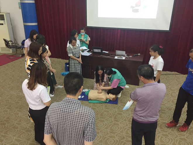 為了向廣大教職工普及緊急情況自救能力,增強自我保護意識,促進廣大教職工的身心健康。6月30日下午,龍江社區(qū)衛(wèi)生服務(wù)中心張運雙臨床醫(yī)師給我校舉辦了“徒手心肺復(fù)蘇術(shù)”知識講座活動。