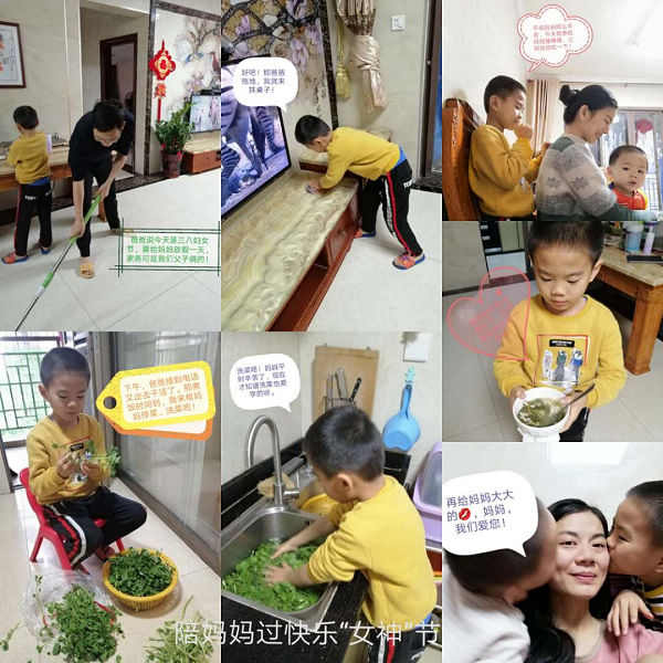 時(shí)光可以暗淡容顏,但帶不走美麗;勞作可以粗糙雙手,但帶不走關(guān)愛(ài)。陽(yáng)春三月,萬(wàn)物復(fù)蘇,在這個(gè)春暖花開(kāi)的季節(jié),一年一度的“三八”國(guó)際婦女節(jié)來(lái)臨了,為了讓少先隊(duì)員學(xué)會(huì)付出、學(xué)會(huì)回報(bào),懂得孝敬、懂得體諒長(zhǎng)輩的良苦用心,羅沙小學(xué)大隊(duì)部現(xiàn)向全校少先隊(duì)員發(fā)出倡議,號(hào)召全體少先隊(duì)員在這個(gè)特殊的節(jié)日里,用自己的行動(dòng)去做一些力所能及的小事情,為媽媽、奶奶、外婆、老師等女性長(zhǎng)輩們獻(xiàn)上他們最真誠(chéng)的祝福!下面我們一起來(lái)看看他們“三八”當(dāng)天,他們都是如何把愛(ài)獻(xiàn)給最美女神的吧!