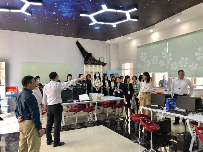 在濮文磊校長(zhǎng)的帶領(lǐng)下,來賓們參觀了創(chuàng)客空間等功能室場(chǎng)。我校優(yōu)美的校園環(huán)境、完善的設(shè)施設(shè)備,獨(dú)具特色的校園文化贏得來賓的高度盛贊,內(nèi)容豐富的文化墻、雅致的校園景觀,處處讓客人們駐足留影。