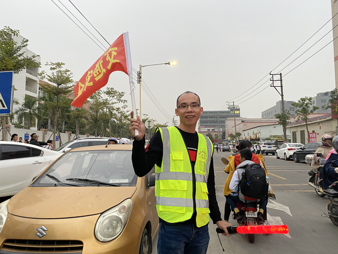 護學(xué)志愿者疏導(dǎo)來往車輛