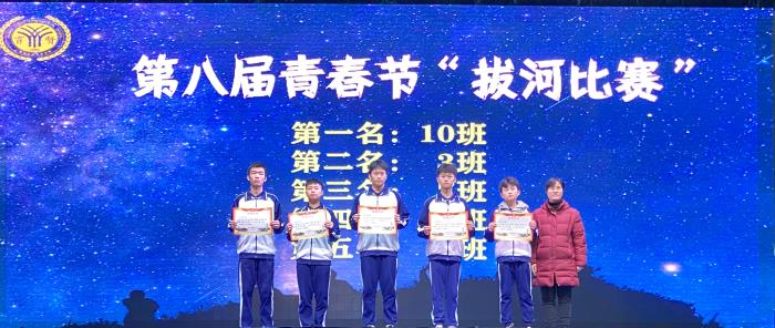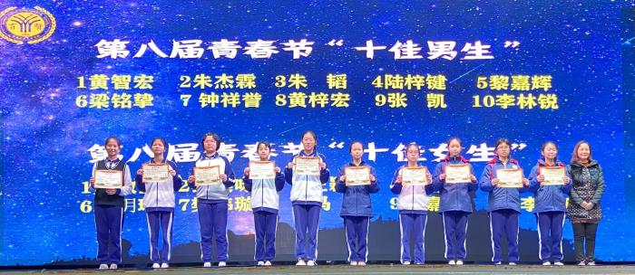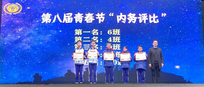 接著,一段本學(xué)期青春節(jié)活動(dòng)的視頻激活了彼此的記憶。本次青春節(jié)安排了班級(jí)籃球賽、拔河比賽、宿舍評(píng)比、五人六足、路在竹下等活動(dòng),精彩紛呈,感染了在場(chǎng)全體師生。由盧熙瑤、戴彩妍等五位老師為獲獎(jiǎng)班級(jí)及個(gè)人進(jìn)行了頒獎(jiǎng)。