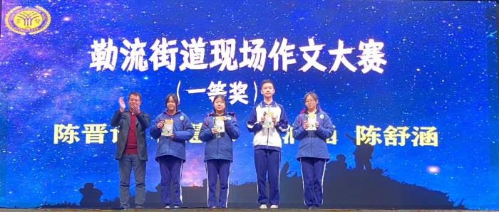 張紅軍老師為學(xué)校現(xiàn)場(chǎng)作文大賽特等獎(jiǎng)同學(xué)頒獎(jiǎng)