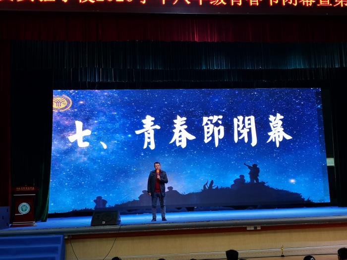 盧林副校長(zhǎng)為青春節(jié)活動(dòng)總分優(yōu)異的班級(jí)頒獎(jiǎng)