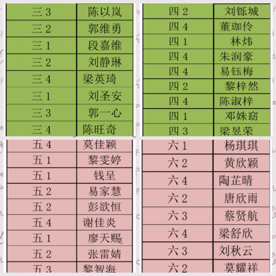 獲得表揚(yáng)獎的班級是:三年2班,三年3班,四年2班,四年3班,五年2班,五年4班, 六年2班,六年3班