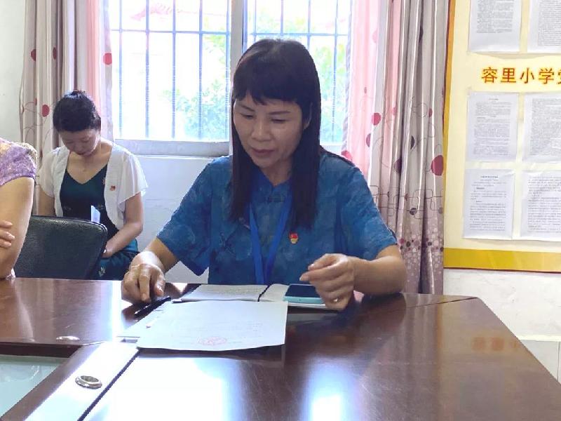7月16日上午,中共容里小學(xué)黨支部在黨員活動室隆重召開黨員大會,討論預(yù)備黨員蘇麗明同志的轉(zhuǎn)正問題。