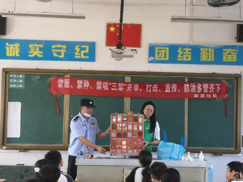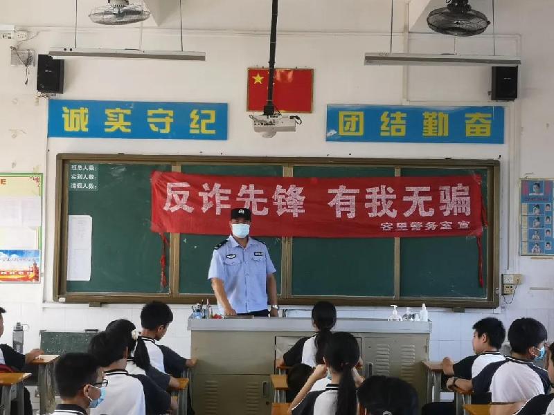容桂派出所新地社區(qū)民警中隊(duì)郭德雄警長的帶領(lǐng)下,容桂派出所綜合室和容桂派出所刑警隊(duì)?wèi)?yīng)邀來到我校六年級(jí),為六年級(jí)的學(xué)生開展了主題為“反詐先鋒 有我無騙”和“禁販、禁種、禁吸‘三禁’并舉,打擊、宣傳、防治多管齊下”的教育,郭警長親自做主持,現(xiàn)場給學(xué)生講述了被詐騙的案例,并告訴學(xué)生如何與不法分子斗智斗勇;另外給刑警隊(duì)成員給學(xué)生展示了毒品模型,讓學(xué)生認(rèn)識(shí)到毒品的危害,感受到不法分子的隱晦。學(xué)生在警員們聲情并茂的合力教育下,增強(qiáng)了自身的法律意識(shí),用法律武裝起來的學(xué)生們將更有智慧!而容里小學(xué)的安全教育也將警鐘長鳴!
