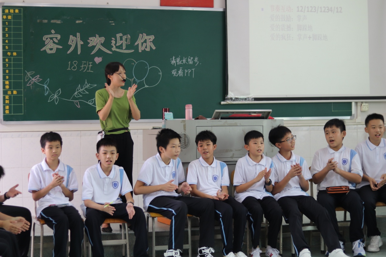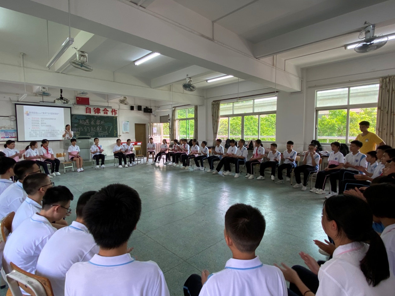 同學(xué)們學(xué)會了用整齊劃一的掌聲表達(dá)“愛的鼓勵”,與此同時,各班還制定了團體契約,為形成一個彼此接納、安全、關(guān)懷、支持、親切溫暖的大家庭而努力。