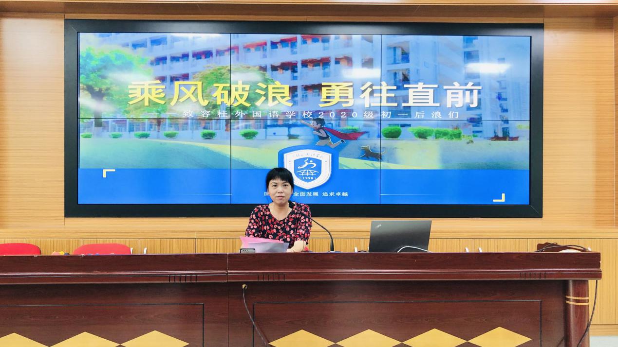 活動的最后,周倩文副校長以直播的形式,給全體初一新生作了一番講話。她對2020級新同學(xué)的到來表示熱烈歡迎,同時也對學(xué)校的規(guī)章制度作了進一步詳細(xì)的說明。她充分肯定了同學(xué)們今天的表現(xiàn),對同學(xué)們?nèi)旰笕〉脙?yōu)異的成績充滿了信心。