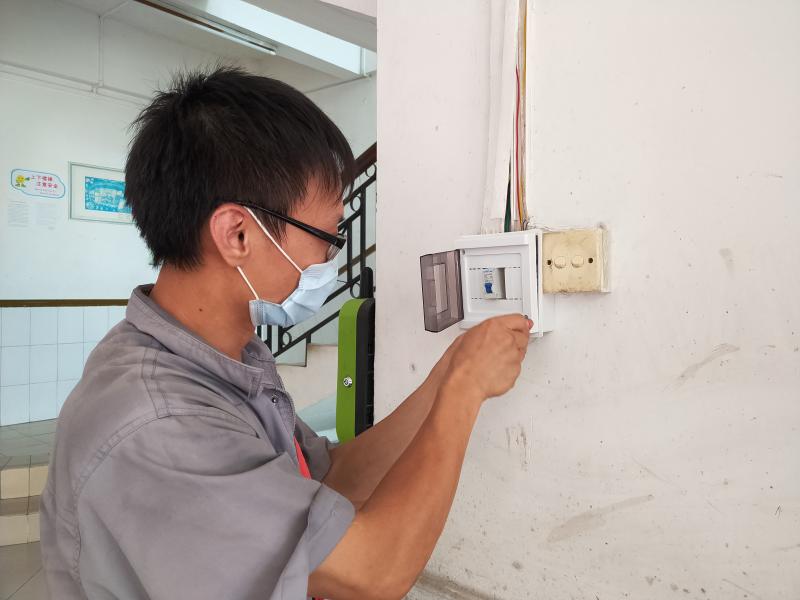學(xué)校組織專(zhuān)業(yè)人員對(duì)存在有安全隱患的天花板進(jìn)行整修,逐一排查和測(cè)試教室內(nèi)電氣設(shè)備、電路線管。