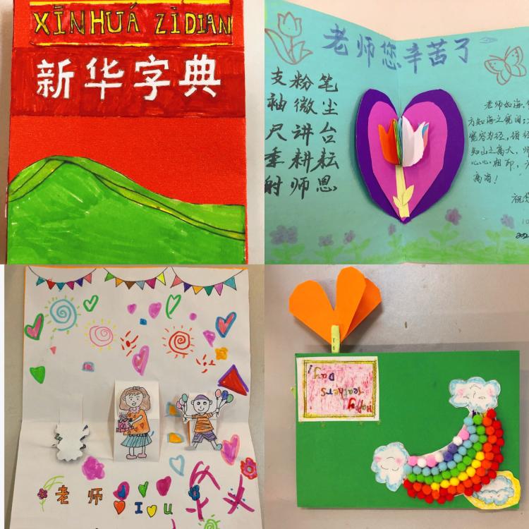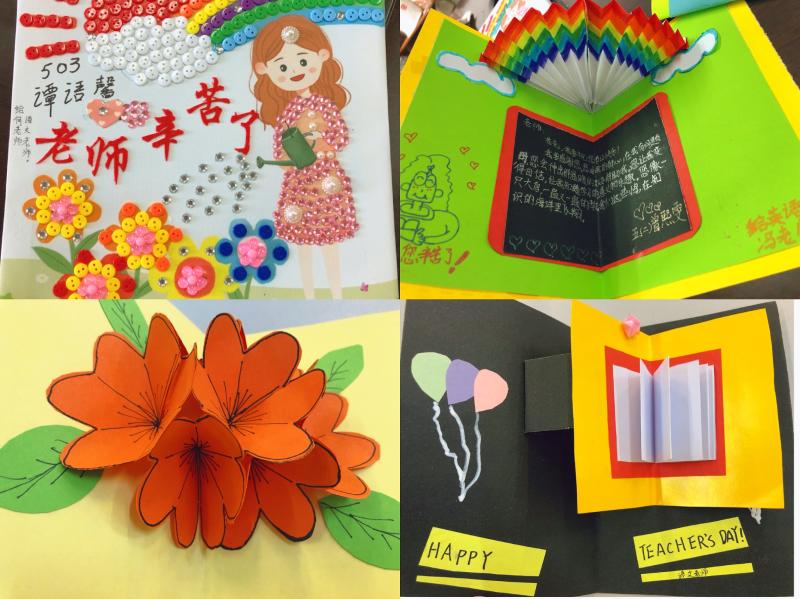 “張張賀卡傳真情,句句祝福暖師心”,活動(dòng)的最后,各年級的優(yōu)秀賀卡制作者到舞臺(tái)上展示他們的精美賀卡。他們利用周末親手制作,花式多樣,極具創(chuàng)造力,小小的賀卡附上了他們濃濃的謝意,并在這個(gè)特殊的節(jié)日送給了自己喜歡的老師們。
