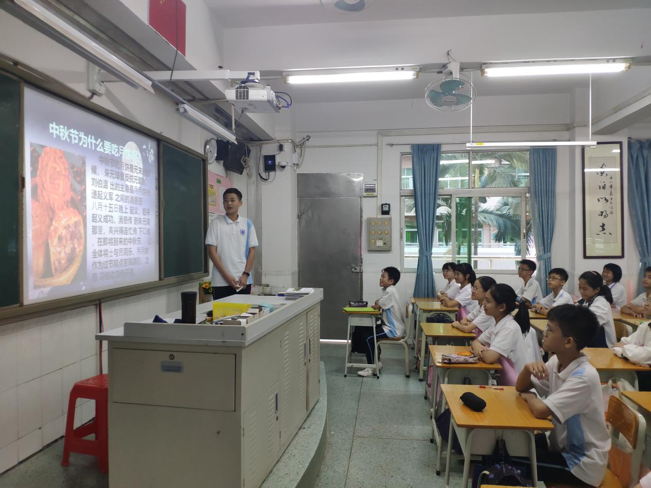 為弘揚優(yōu)秀傳統(tǒng)文化,過好傳統(tǒng)節(jié)日,9月21日下午,容桂外國語學校初二年級舉辦“我們的節(jié)日――中秋節(jié)”主題班會活動。