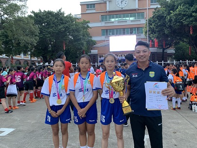 其中我校三名足球隊員譚倩怡、唐詩羽、楊欣怡憑借自身強(qiáng)硬的本領(lǐng)被抽調(diào)參加容桂代表隊。譚倩怡等三位同學(xué)既是學(xué)校足球隊隊員,同時也是我校田徑隊的優(yōu)秀成員。由于今年順德區(qū)足球比賽和容桂街道田徑比賽時間較接近。因此在這段時間里他們既要代表容桂參加區(qū)的足球訓(xùn)練又要參加學(xué)校的田徑訓(xùn)練,但是三位優(yōu)秀的運(yùn)動員從未喊過一聲苦,堅持每天訓(xùn)練,發(fā)揚(yáng)拼搏精神,追逐自己的夢想。