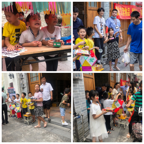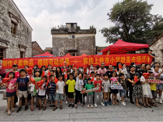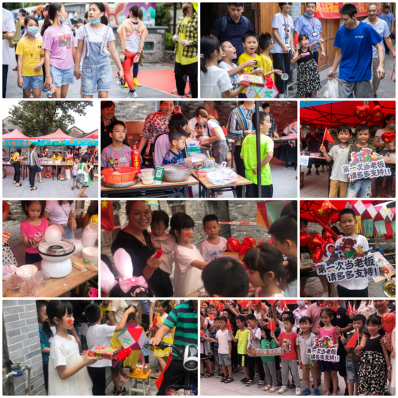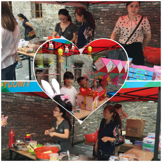 9點整,隨著七彩氣球破繭而出、直沖云霄,云里墟正式啟動。作為本次墟市的重頭戲之一,上佳市小學(xué)在楊連生故居內(nèi),開展公益跳蚤市場活動。學(xué)生與家長們齊動手,制作義賣物品,推銷自己的勞動成果。有賣各種食品的、有賣燈籠的、有賣各種飾品的、有賣書本文具的......各種商品,琳瑯滿目。一群可愛的小朋友不斷吆喝,想盡辦法把自己的物品推銷出去,真正體驗了一次“小鬼當家”做老板的滋味。這里成了歡樂的海洋,賣家與買家各取所需,我淘我樂,溫情傳遞。